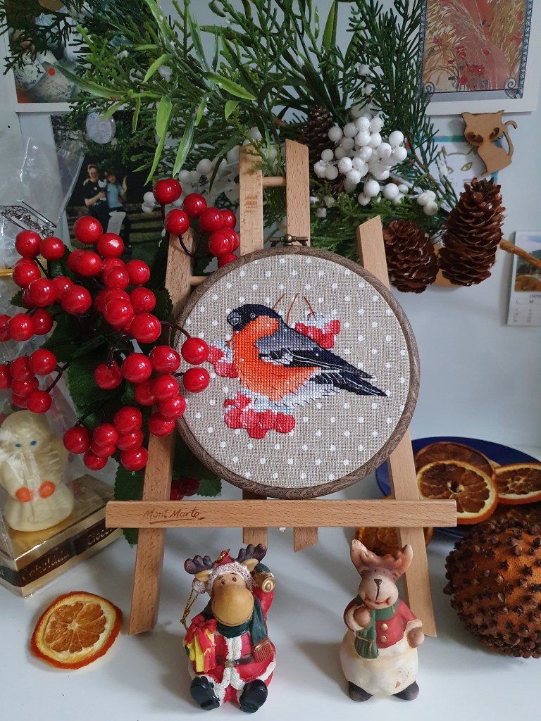 Merry Christmas and a Happy New 2021 Year to all my friends and followers. I hope the next year will be better to everyone and that all your dreams come true! My last minute cross stitch – Bullfinch by Serafima Abramova pattern 🙂