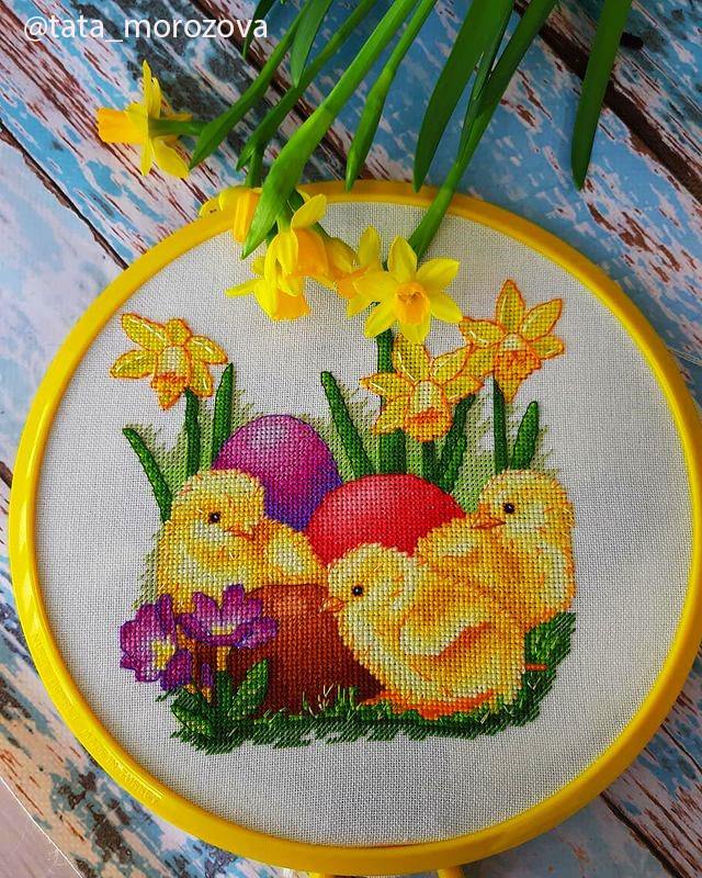 One more completed cross stitch picture by our pattern – Easter Chickens. Thank you for sharing it with us!