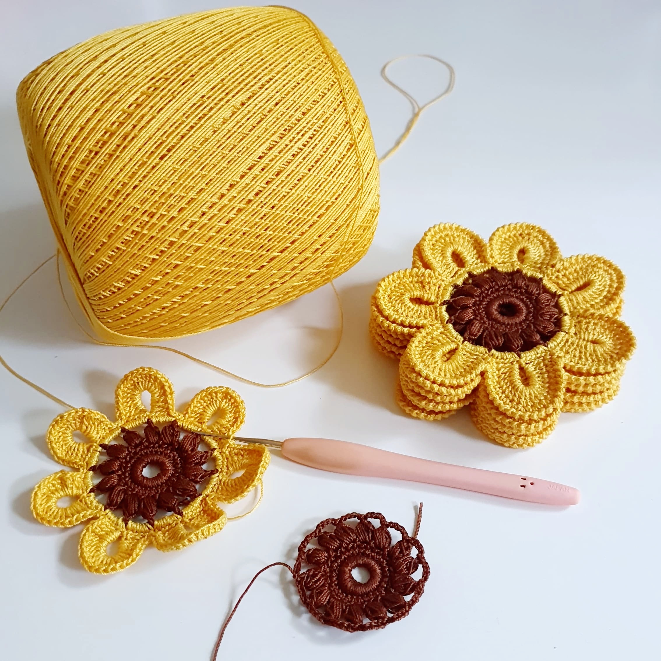 When a customer buys a garland, I try to crochet it as fast as I could. The processing time of an item isn’t long at CrochetCabinetCrafts – from 3 to 5 working days. When a customer buys two garlands, I get panicky. My last order was Poppies and Sunflowers garlands that require a lot of time to crochet. Today I can breathe a sigh of relief – new Poppies garland is ready, and almost all flowers for Sunflower bunting are ready. The working process is here: