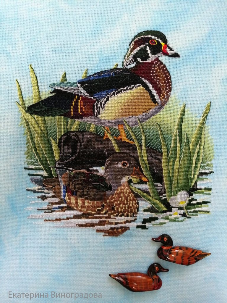 One of our bestsellers is the Wood Ducks, or Carlina Ducks cross stitch pattern. Ekaterina stitched it on hand died evenweave, which fits perfectly to this stitching. Thank you, Katia, for sharing your high-level stitching with us!