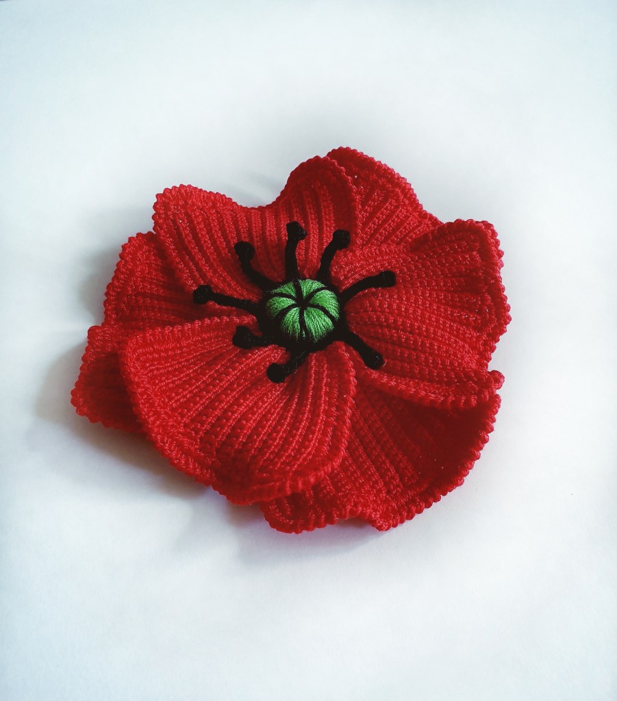 As promised, the brooch is ready. There is only one problem with it and it is colour. Actually, the Poppy is dark red with a little shade of pink. I took a million photos and no one shows the colour for real.