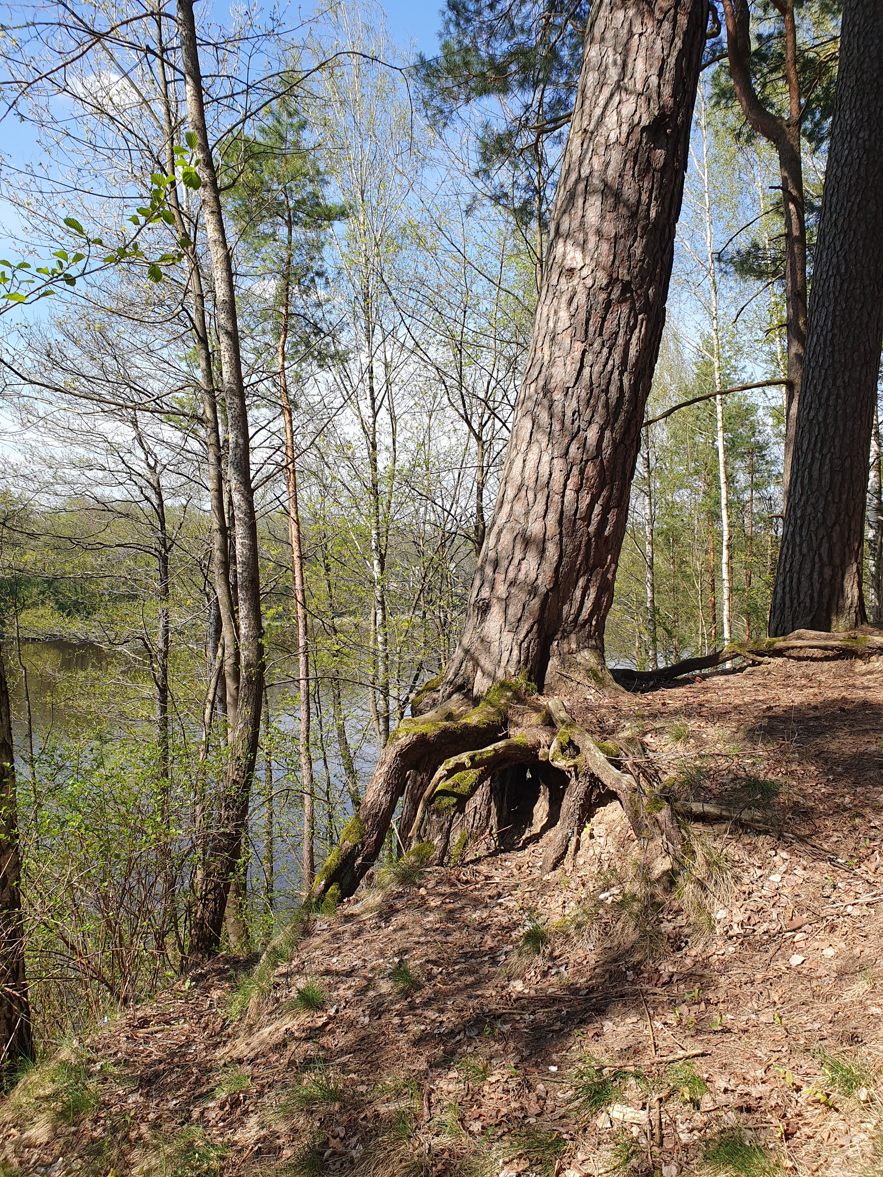 The soil of Southern Lithuania is sand on which juniper, pine trees and mushrooms grow well. The banks of the Nemunas are high, and the sand settles si, helped by the wind and rain. For this reason, it is often possible to see pine trees on the banks of the Nemunas, which are held upright by only one deep-set root. The rest of them grow flat, and these pines stand even when there isn’t much soil under them.
