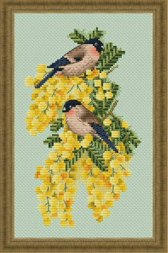 New Bullfinches on the Silver Wattle Counted Cross Stitch Pattern is in StitchersLand on Etsy now.
