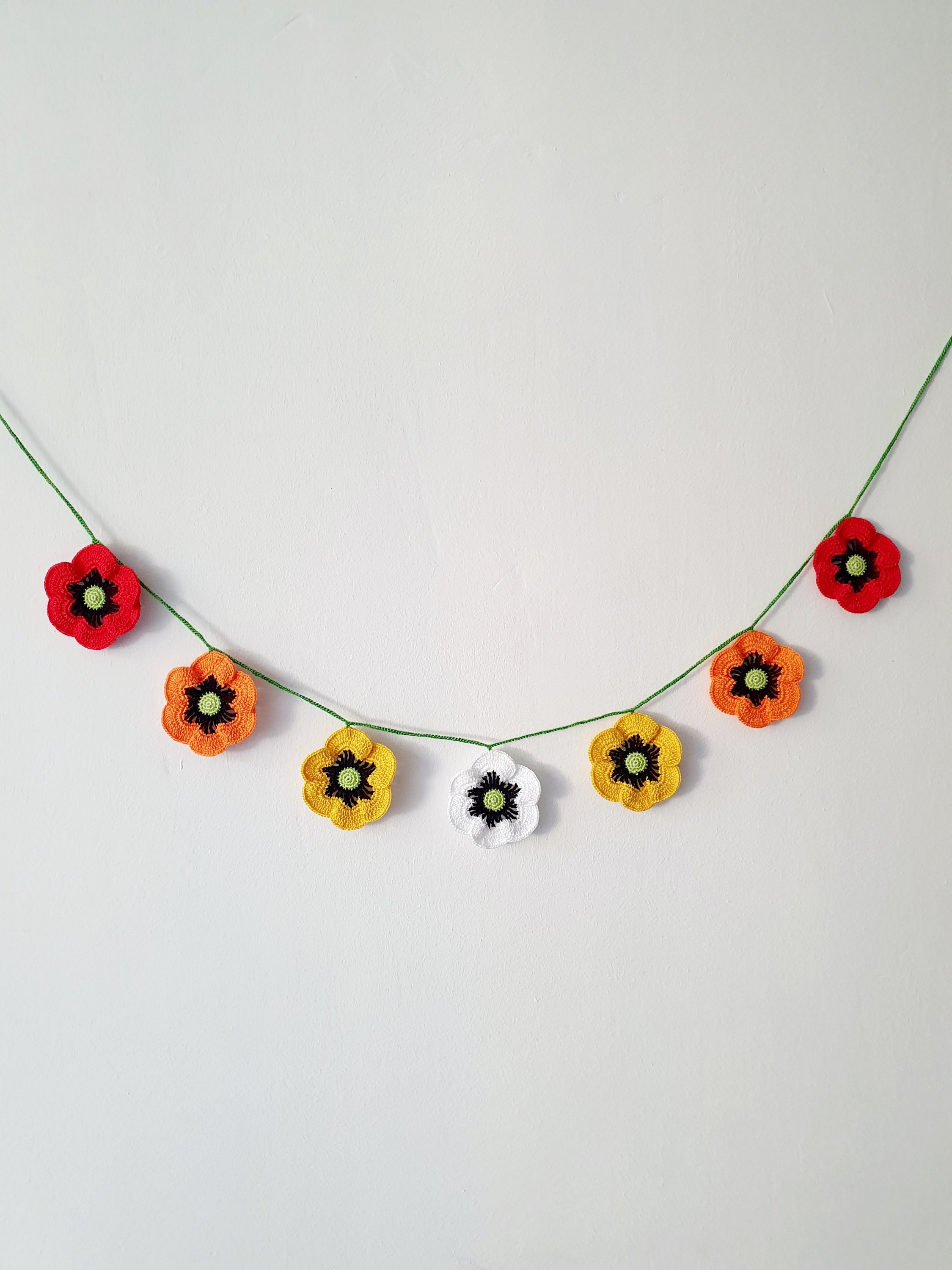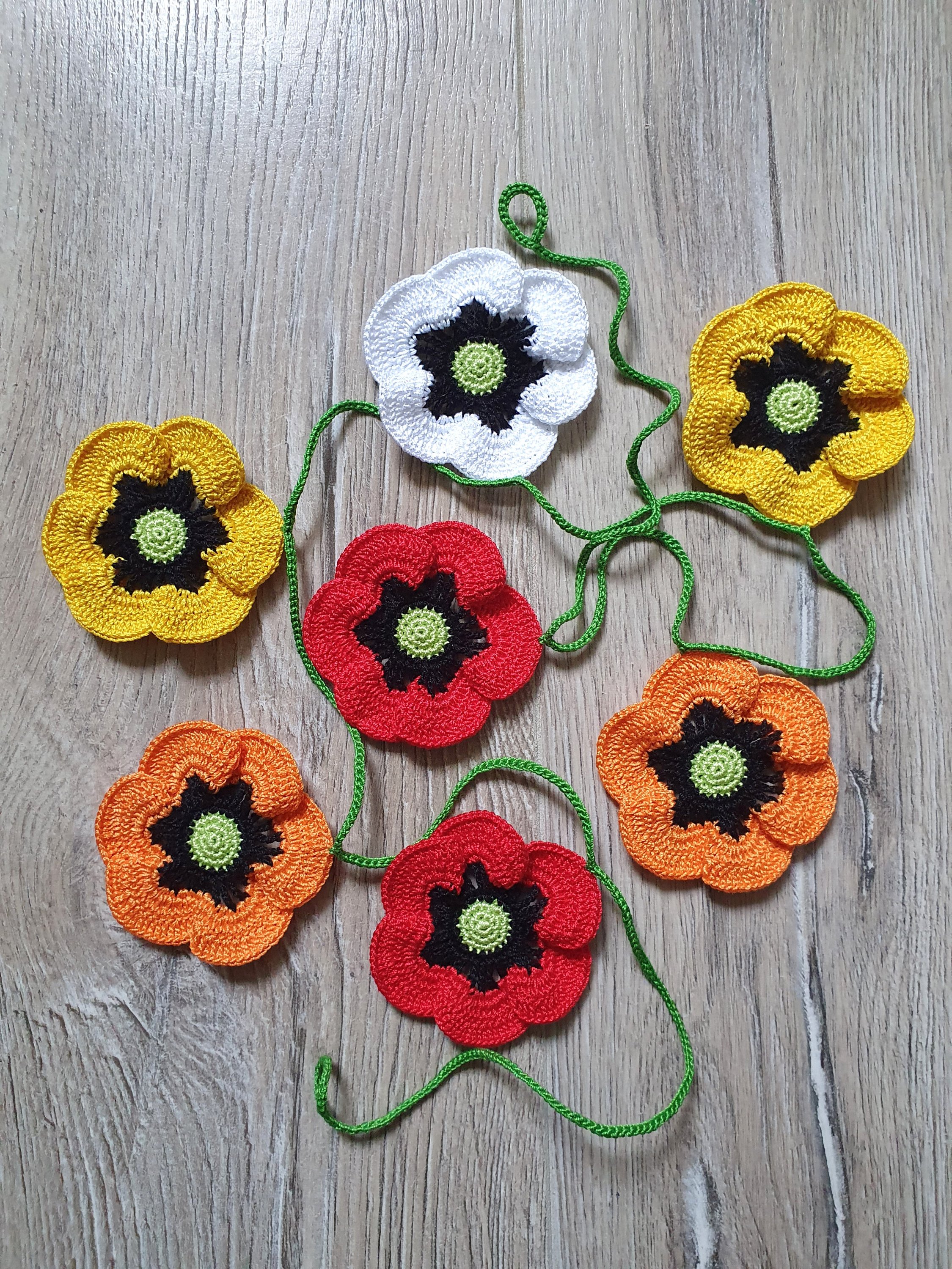 This colourful Poppies garland will brighten up every gloomy day, especially one like today. It’s rainy and dark time outside in Warsaw. https://www.etsy.com/listing/1313710816/crochet-colourful-poppies-bunting