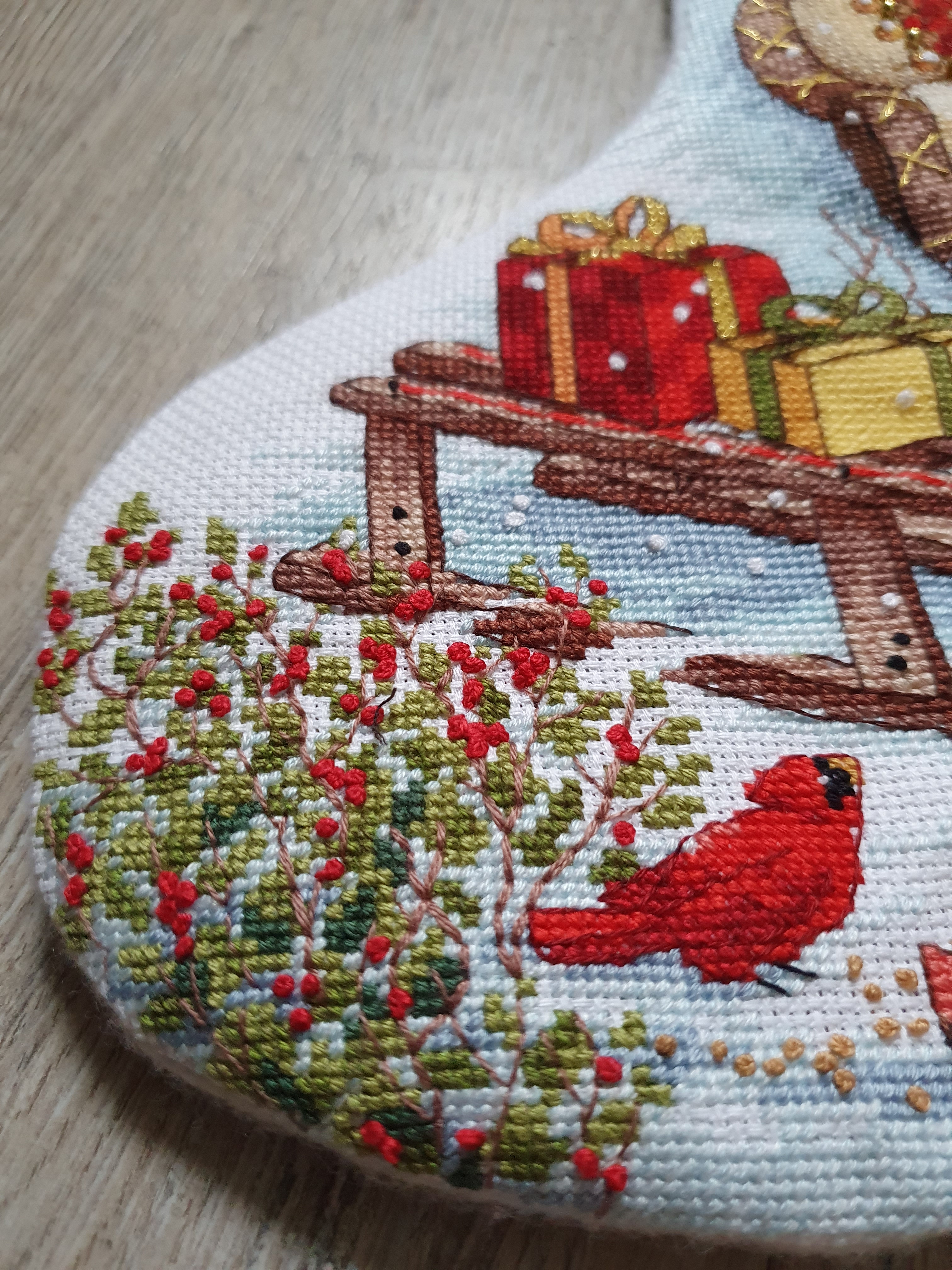 This Sal was the first and on the Lakeside Needlecraft site, there was an amazing atmosphere in this group, everyone was enjoying the success of the others. We were getting a part of this Sal once a month and immediately started guessing what the next part would be. We had so much fun stitching the mystical creatures that were designed by Durene Jones. I think I didn’t finish the job for so long because I didn’t want to forget the atmosphere that we had throughout the year. But I was wrong, it’s impossible to forget it and every time I look at this stitching, I smile and remember those wonderful times.