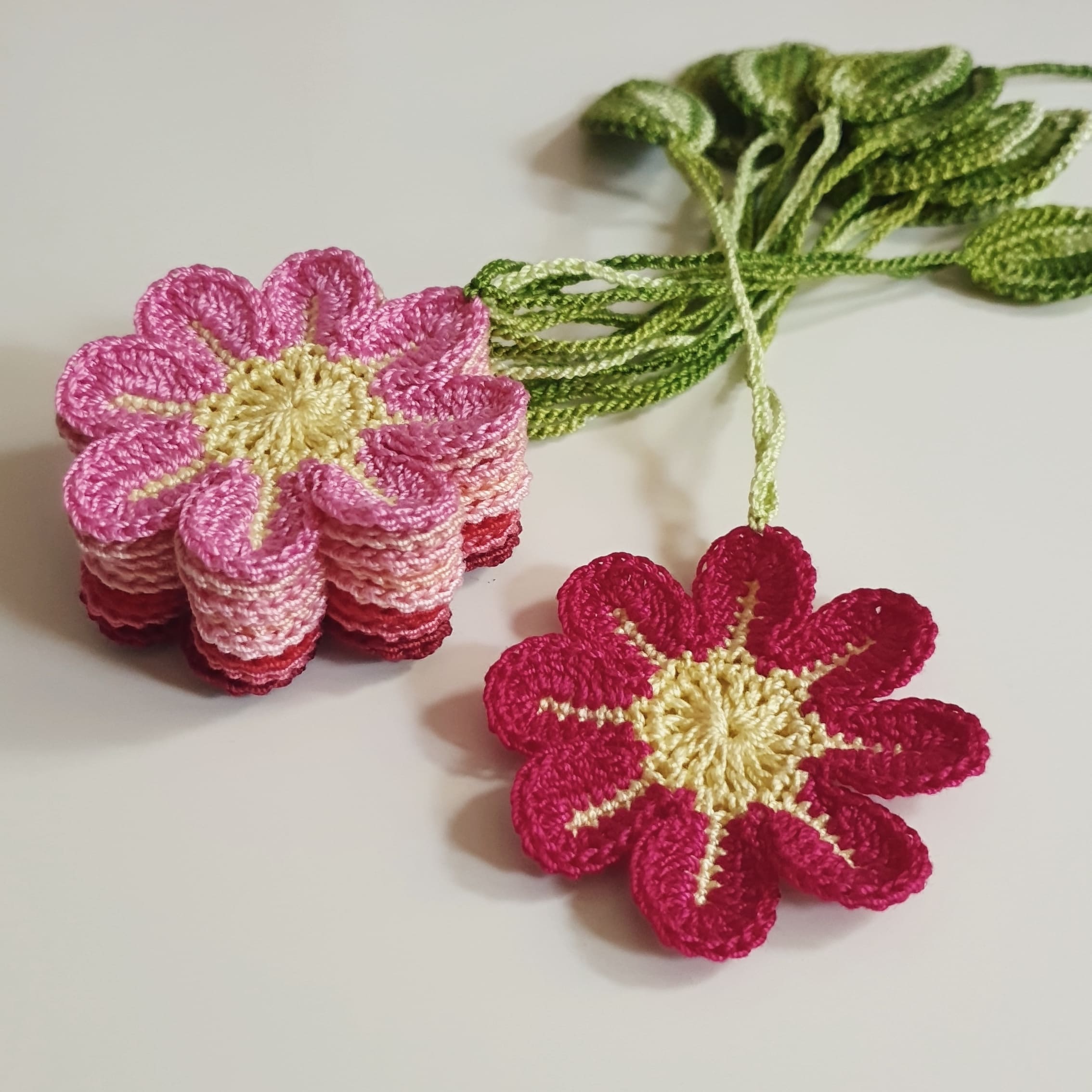 Creating this new bunting, I used only pink and red shadows yarn. Two new colours appear in my stash – dusty rose and raspberry.